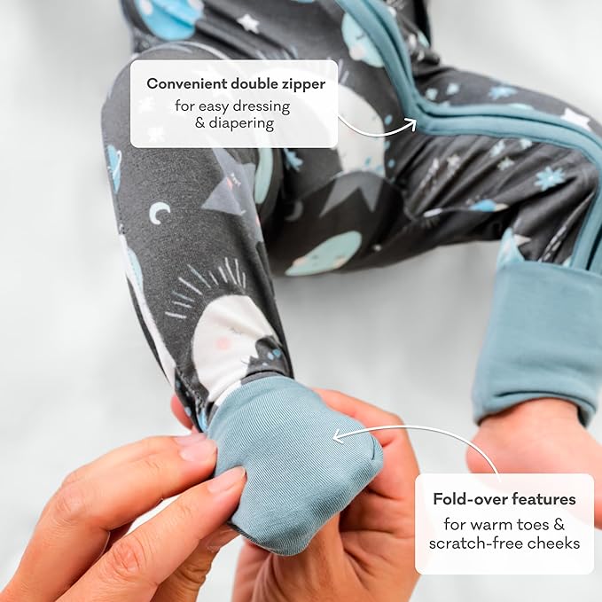 • [Fold Over Features] Our sleepers feature fold-over mittens (Preemie to 12-18M) to prevent scratching and fold-over foot cuffs for an easy switch between a footless romper and a footed sleeper. Plus, the two-way zipper makes middle-of-the-night diaper changes a breeze!