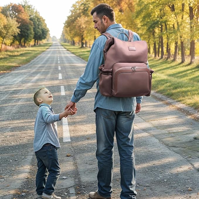 - 【Unique Design & Dimensions】:The front pocket and main compartment of baby diaper bag are sealed with smooth dual zipper design allows the baby backpack to be opened with one hand.The zipper design ensures the secure storage and access of items, perfect for the modern women,mom & dad on the go. 【Dimensions】The diaper bag:15.5"x9"x17"(LxWxH),Weight:1.58LB, equipped with adjustable backpack strap:19.5"-36",Capacity:35 L Handle:3.5".Washable diaper changing pad:20"x11"(LxW),Stroller Straps:6.5".