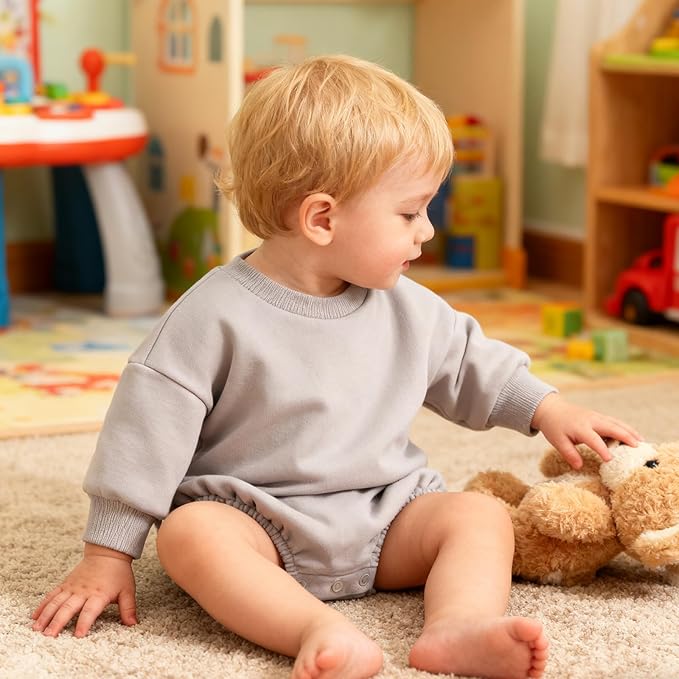 Bafeicao Baby Boy Girl Sweatshirt Romper Organic Cotton Solid Color Long Sleeve Bubble Romper Oversized Warm Fall Winter