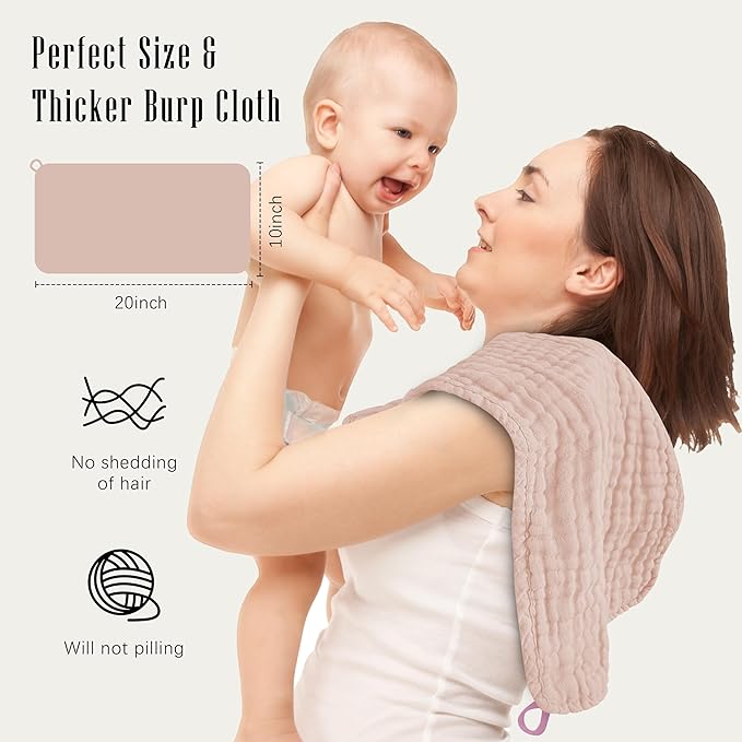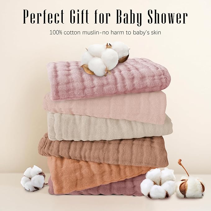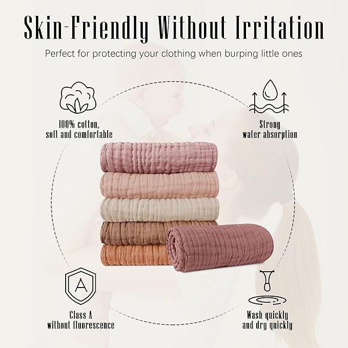 SWEET DOLPHIN 12 Pack Muslin Burp Cloths Large 100% Cotton Burping Clothes for Baby Drool - Absorbent and Soft Boys & Girls Milk Spit Up Rags for Newborn Essentials Registry - Neutral Retro