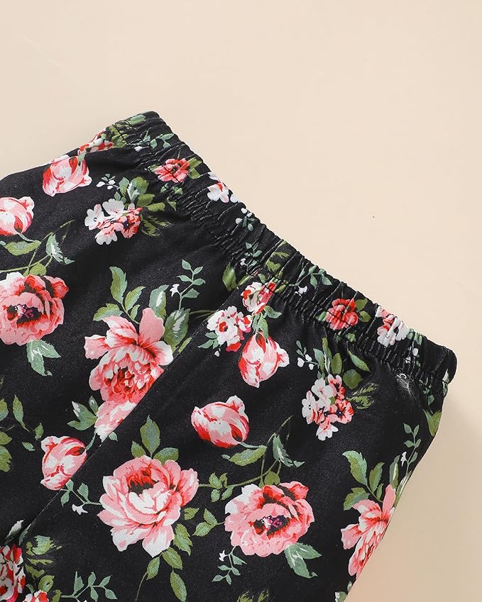 - Design: Pretty ruffle sleeve romper top and floral pattern pant sets make your baby girl more adorable in all day. Cute letter printed is full of love