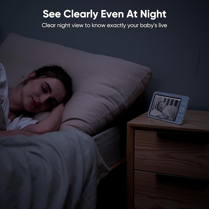 - 【720p HD Screen with 4x Zoom】- The HD 720p resolution color split-screen coupled with a sharp picture with 10 times more details than ordinary 240p display baby monitors, allowing you to keep an eye on your baby more clearly. Need a closer look? The bonoch baby monitor 2x to 4x zoom capabilities let you see your baby up-close. The auto night vision feature provides black and white images on the video baby monitor at night to see your little one clearly