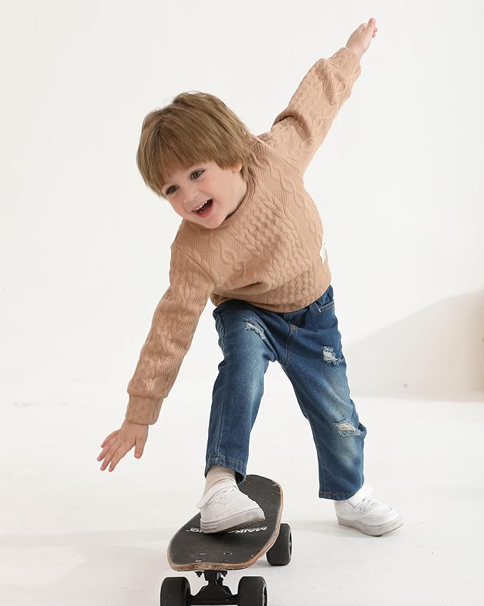NZRVAWS Toddler Baby Boy Clothes Pullover Sweater Ripped Jean Sweatsuit Little Boy Outfit Fall Winter Clothing Set 6M-7T