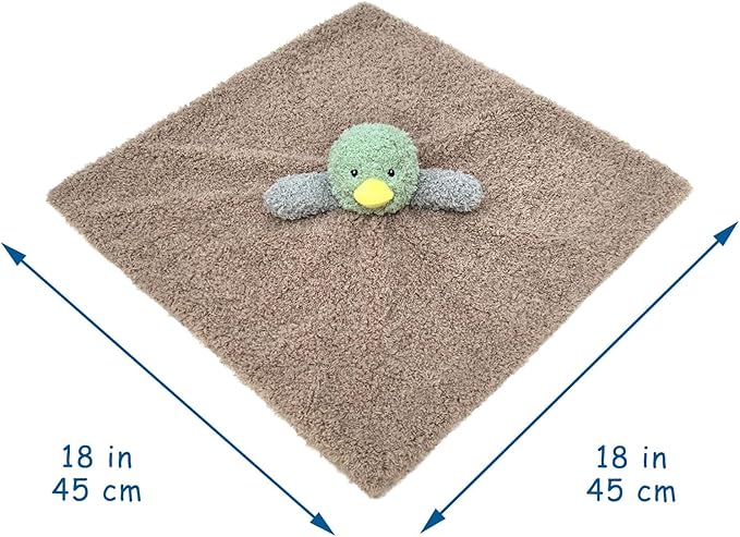 Baby Mallard Duck Soft Stuffed Animal Security Blanket, Plush Green Duck Character Lovey Blanket, Baby Shower/Nursery Gift, Newborn Infant Toddler Snuggle Blankie for Boys Girls, 18 Inches