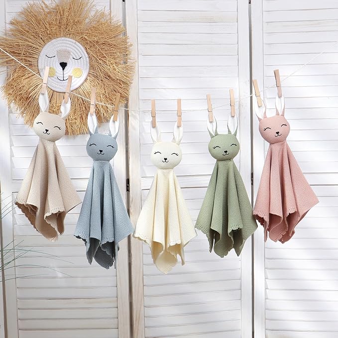 LAWKUL Bunny Lovey Baby Blanket Soft Cuddly Security Blanket Knit Snuggle Comfort for Newborns Toddler Boy Girl Blue 16x16in