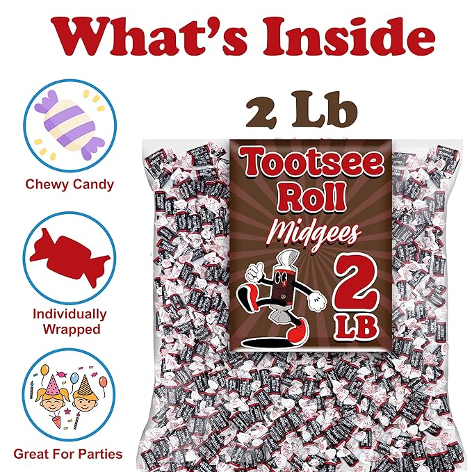 - LARGE 2 LB BULK BAG: Comes with a generous 2-pound supply of individually wrapped chewy chocolate candy, ideal for stocking up your pantry, office, or candy station.