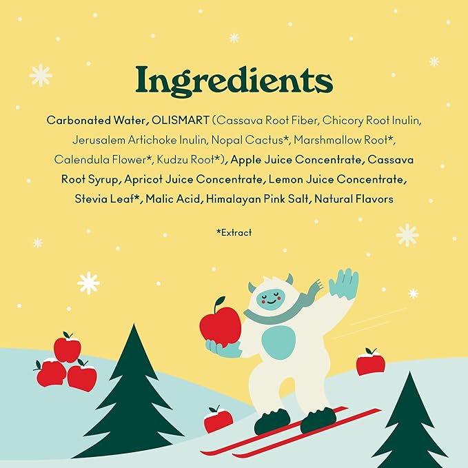 OLIPOP Prebiotic Soda Pop, Crisp Apple, Pantry Pack Packed with Prebiotics, Fiber, and Botanicals, Gluten Free, Vegan, GMO Free, 12oz (12-Cans)