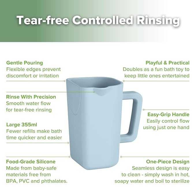 - TEAR-FREE RINSING WITH CONTROLLED POUR: Designed with a controlled pour spout, this baby bath cup allows water to flow smoothly, preventing splashes and keeping soap and shampoo out of your little one’s eyes. Bath time stays fun and fuss-free!