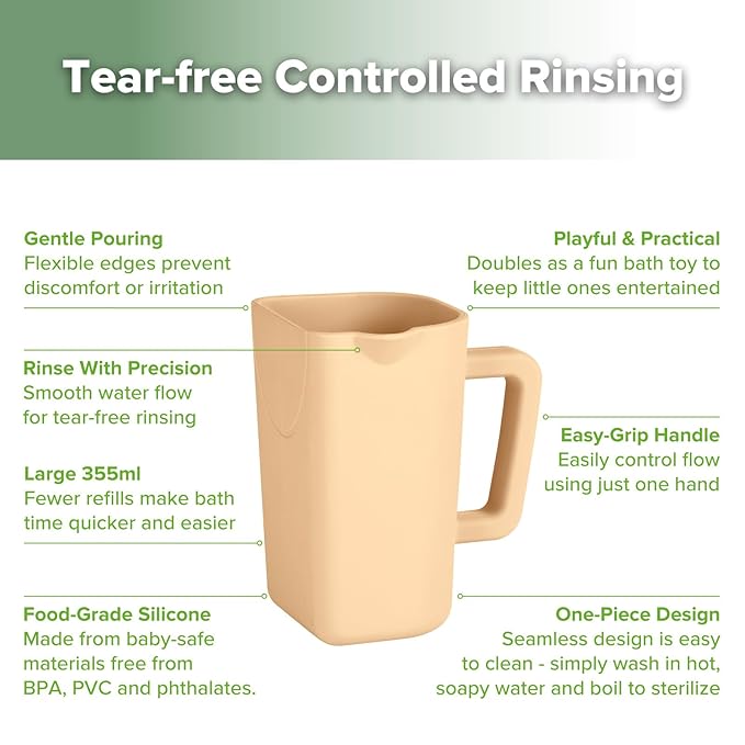- TEAR-FREE RINSING WITH CONTROLLED POUR: Designed with a controlled pour spout, this baby bath cup allows water to flow smoothly, preventing splashes and keeping soap and shampoo out of your little one’s eyes. Bath time stays fun and fuss-free!
