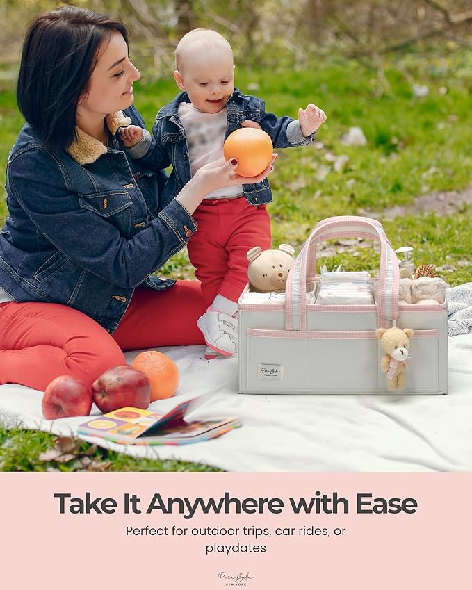 PeraBella XL Diaper Caddy Organizer With Handle, Baby Shower Gifts Basket Bag, Registry Search Must Haves Items, Newborn Girl Boy Nursery Storage Organizer, Baby Bag Essentials, Car Diaper Caddy Cart
