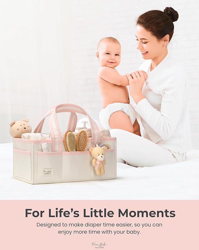 - MULTIPURPOSE USE BABY SHOWER GIFT: Our PeraBella baby caddy makes a thoughtful baby girl and baby boy shower gift. Use as a baby basket, baby organizer for nursery, nursery organizers and storage, baby changing basket, diaper bin, baby storage organizer, diaper tote, diaper holder organizer, diaper stacker, diaper caddy cart, baby boy stuff and baby girl stuff