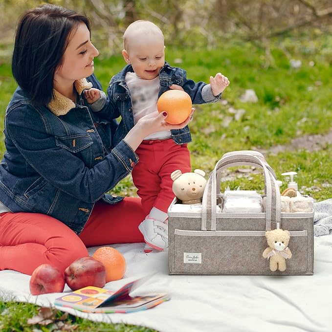 PeraBella Diaper Caddy Organizer with Handle, Baby Shower Gifts Basket Bag, Registry Search Must Haves Items, Nursery Storage Organizer for Newborn Girl Boy, Baby Bag Essentials, Car Diaper Caddy Cart