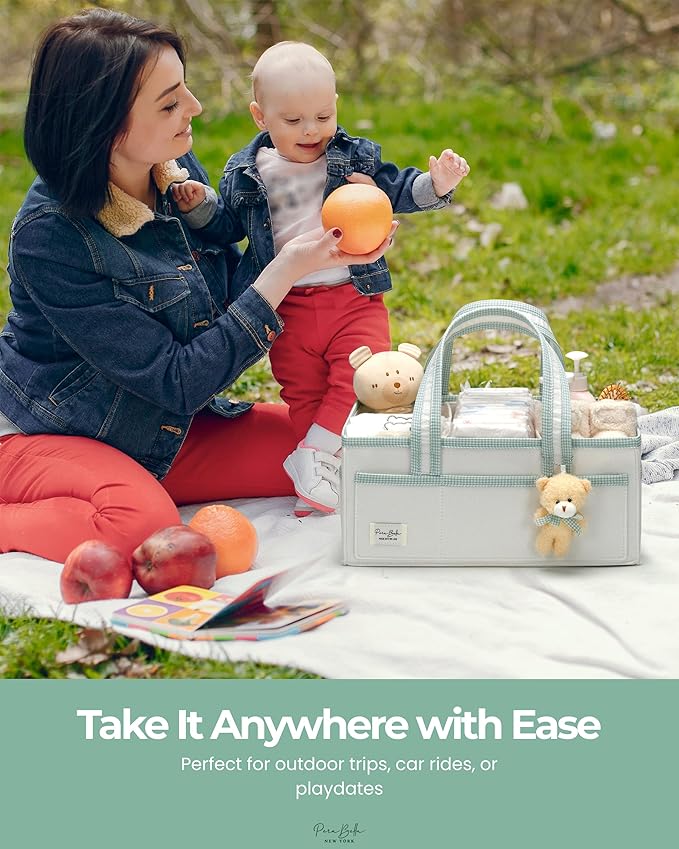 PeraBella XL Diaper Caddy Organizer With Handle, Baby Shower Gifts Basket Bag, Registry Search Must Haves Items, Newborn Girl Boy Nursery Storage Organizer, Baby Bag Essentials, Car Diaper Caddy Cart