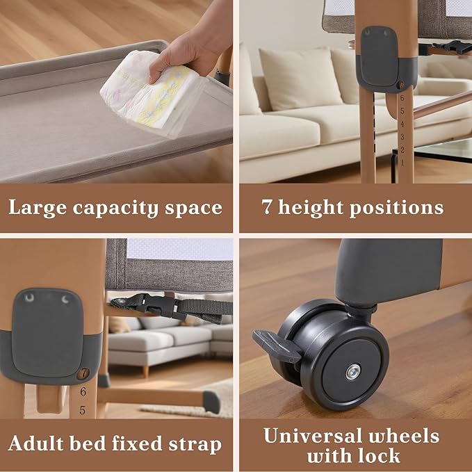 - Adjustable Height: This bedside sleeper features 5 height settings designed to accommodate adults bed heights, ensuring easy nighttime access and keeping baby close for middle-of-the-night care. Switch to tilt mode to help prevent reflux and promote comfortable positioning