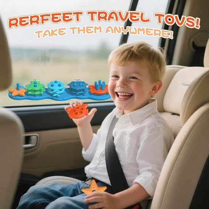 - 【Unique and Safe Design】- Bright colors and cute animal shapes,and Unique suction cup design , SUPER FUN! It really a great sensory toys for toddlers boy girl.
