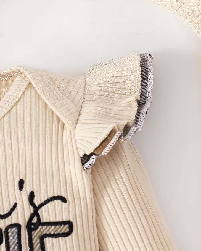 SUNNY PIGGY Baby Girl Clothes Newborn Outfits Infant Ruffle Romper 0-18M Fall Winter Flower Plaid Pants Clothing Set