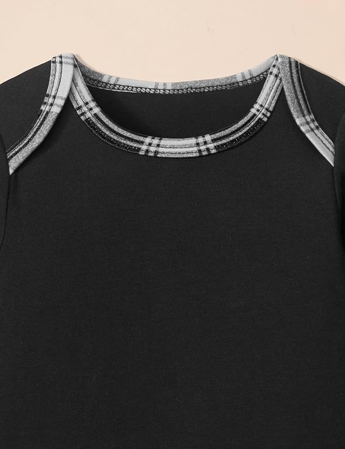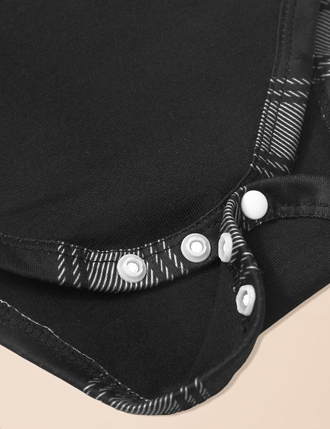- đ°ăCute DesignăThe baby boy outfits features expandable shoulders, bringing more stretching space for the baby. The snap design in the crotch is convenient for mom to change clothes and diapers for the baby. Animal print and plaid patterns keep your baby boy looking super cute.
