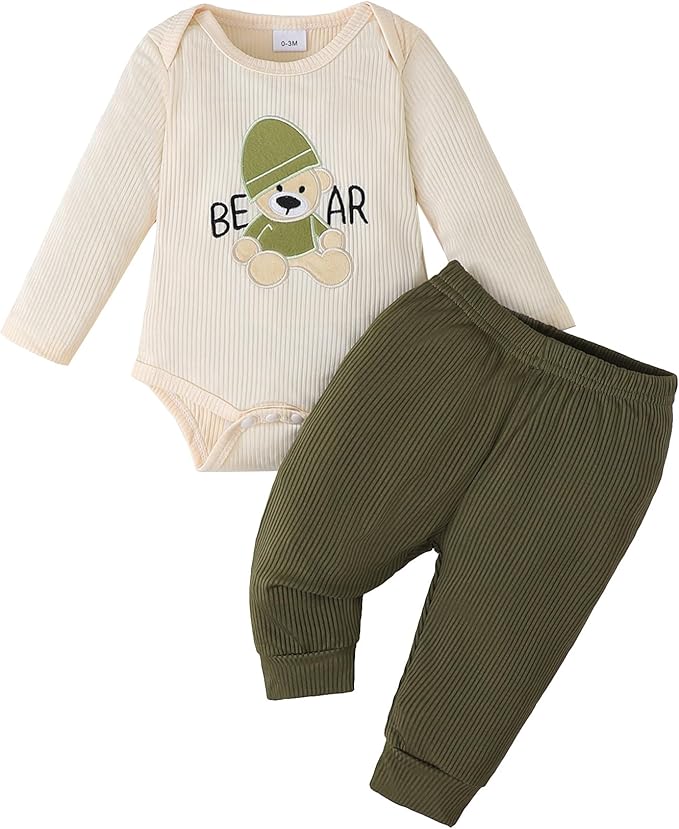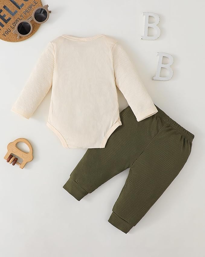 - Complete 3PC Set: This baby boy pants outfits set includes a stylish romper, comfortable pants, and a matching hat, making it the perfect all-in-one outfit for your little one from newborn to 18 months.