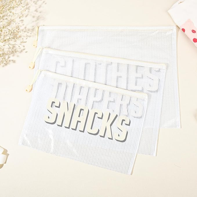 - Designed for Labor and Delivery Hospital Bag with Zippers - Each pouch is equipped with a sturdy zipper closure, ensuring your items stay securely in place. Labeled with CLOTHES, DIAPERS, and SNACKS, this 3-piece pouch set keeps your hospital bag organized and items easily accessible during labor and postpartum recovery