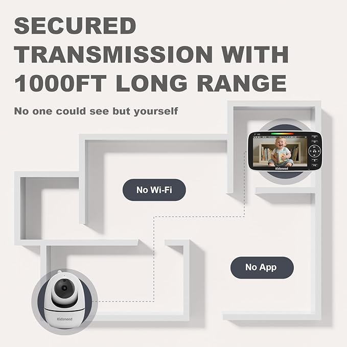 - LARGE BATTERY CAPACITY – you can use the device for 48 hours without needing to recharge. The 5000mAh battery will last you 12 hours on display mode and a whole day with the display turned off. Our baby monitor has a long-distance transmission with a 1000 ft range.