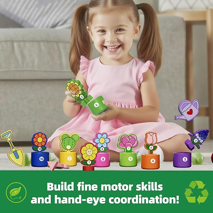 - Montessori-Aligned Learning: Helps develop fine motor skills, counting abilities, and spatial reasoning through interactive play. Kids match 10 vibrant geometric blooms to numbered pots—fun practice for color, shape & number recognition
