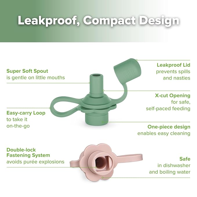 - ๐ฆ๐ฝ๐ถ๐น๐น-๐ฃ๐ฟ๐ผ๐ผ๐ณ ๐๐ป๐ป๐ผ๐๐ฎ๐๐ถ๐ผ๐ป: The tight fit with X-cut flow control activates only when sucked or squeezed, ensuring no spills and reducing choking hazards. Perfect for purรฉes and drinking skill development.