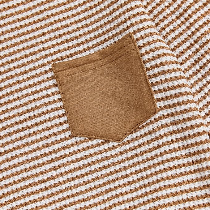- OCCASIONU: Unisex long sleeve t-shirt top shorts set are matching waffle top, white and striped matching pants have pocket and adjustable elastic waistband.Infant Baby boy outfit, suitable for outings, play, travel, kindergarten, zoos, vacations, summer parties, photography,halloween, family day, and more