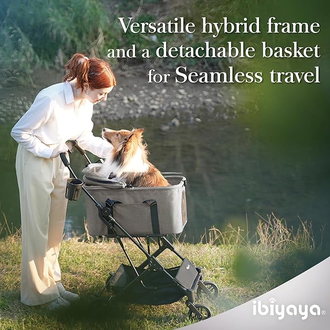 ibiyaya Essential – Travois Tri-Fold Pet Travel System for Medium Dogs, Cats, and More, 3 in 1 Dog Stroller with Detachable Carrier, XL Cabin (Taupe Gray)