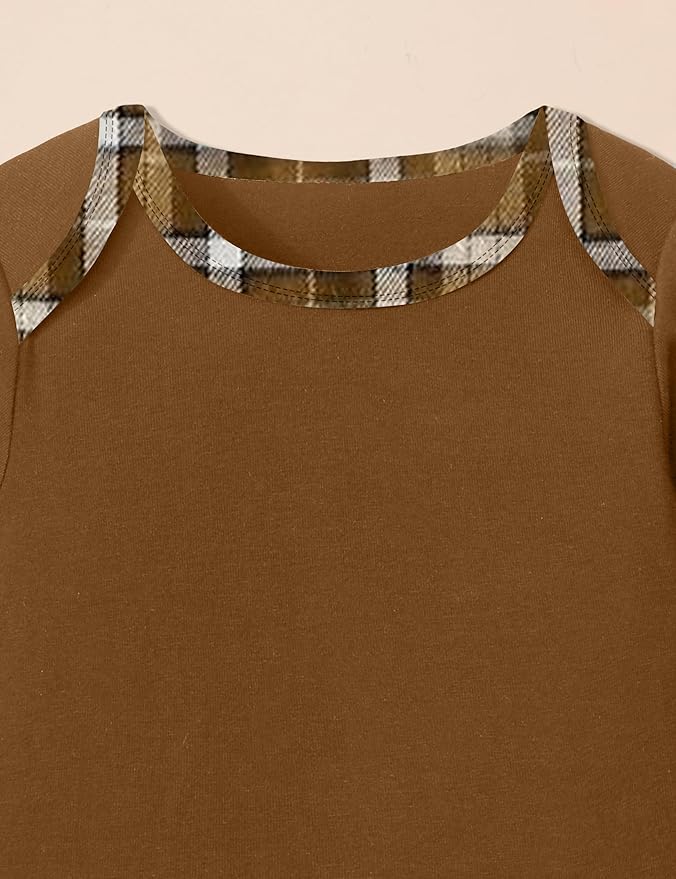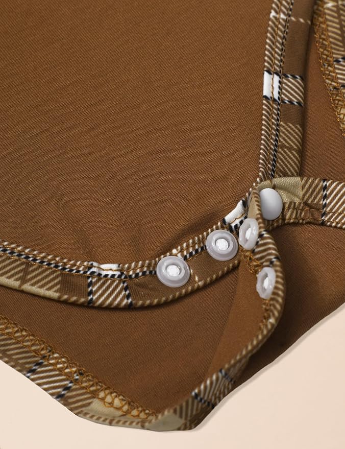 - đ°ăCute DesignăThe baby boy outfits features expandable shoulders, bringing more stretching space for the baby. The snap design in the crotch is convenient for mom to change clothes and diapers for the baby. Animal print and plaid patterns keep your baby boy looking super cute.