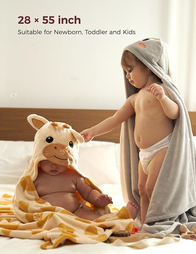 - [A Perfect Gift for Little One ] At the special moment of baby's birth, hooded baby towel is ideal gift for new parents or baby registry. It is soft, cute and practical, beautifully packaged to blend aesthetics with functionality, offering warm care for baby. And tip: machine wash or hand wash in cold water, quick-drying and durable