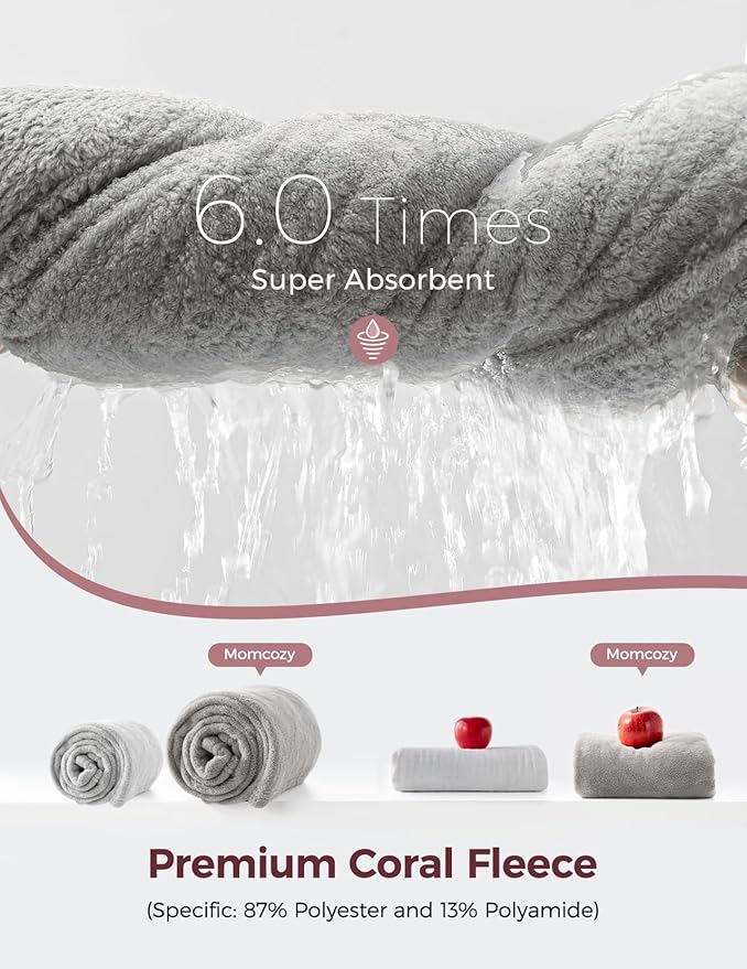 - [6X Super Absorbency, Keep Baby Dry and Comfortable] The baby hooded towel (plush coral fleece material) is 6 times more absorbent than other towels. It quickly absorbs moisture from the baby's skin while being breathable, protecting baby from dampness and staying warm and dry after each bath