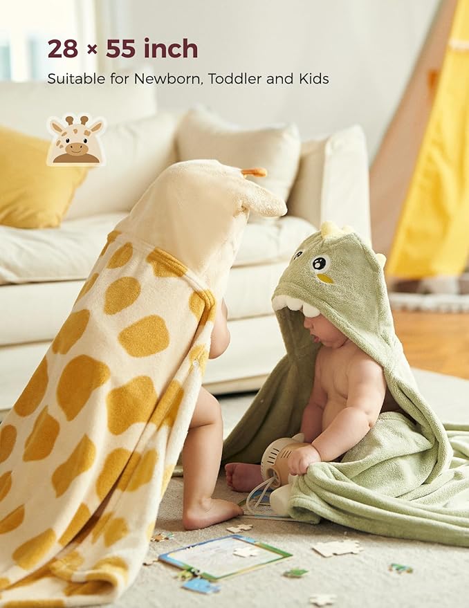 - [Generous Wrap for Baby's Adventurous Play] The large size of 28*55 inches (L x W) can easily wrap around newborn, toddler and kids in the most comfortable way. And secure snap buttons ensure bath towel stays in place, allowing baby play freely after bathing without getting cold. It also serves as a baby blanket, sleeping bag, cape or robe to provide warm hugs anytime, anywhere