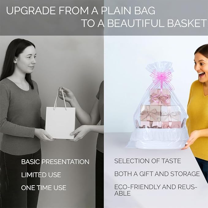 - Stylish Gift Presentation – This cotton rope gift basket comes with a clear cellophane wrap, a gold twist tie, and a matching pink bow, creating a ready-to-give housewarming or baby shower basket.