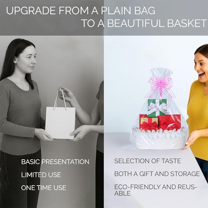 - Refined Gift Basket Design – Comes with a clear cellophane wrap, a gold twist tie, and a pink bow for elegant gift-giving—perfect as a Christmas gift basket, Easter basket, or Mother’s Day present