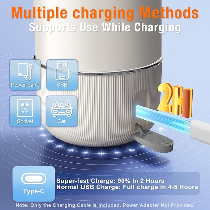- 【Long-Lasting Battery & Rapid Charging】- With a 10400mAh capacity, this portable bottle warmer for travel prepares 6–7 bottles (4oz each) per charge. Type-C fast charging reaches 90% in around 2 hours—compatible with car outlets and power banks.