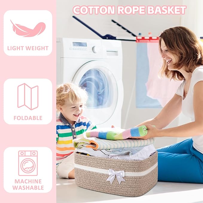 - Safe Material: The basket is 13.5*6*10in and made of high quality cotton material, no chemical material, no odor, soft and skin friendly. It is no sharp edges that may scratch the floor, especially suitable for children and pets. We are passionate about providing you and your family with a healthy and clean home atmosphere