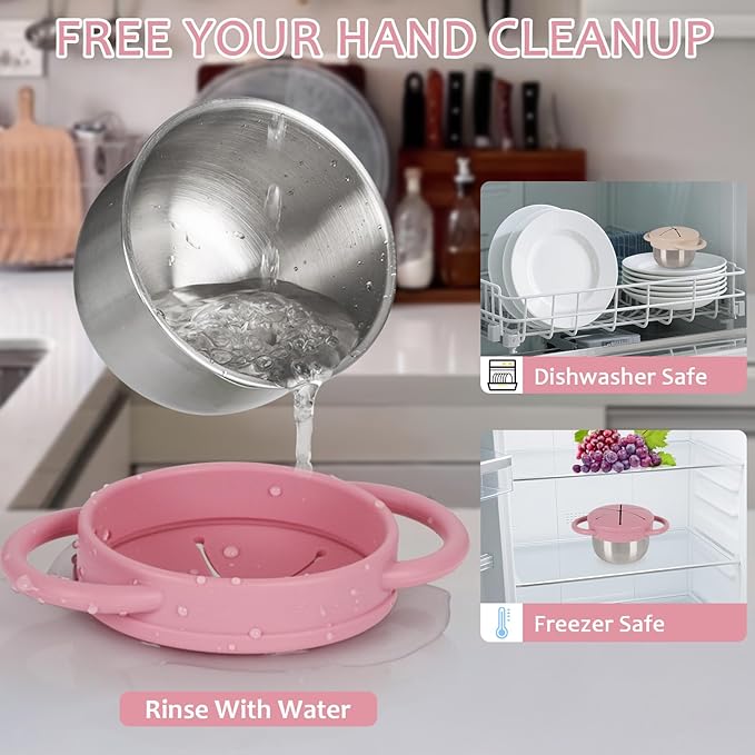 - Easy Clean for Busy Parents - The stainless steel snack containers for kids and two silicone lids are dishwasher-safe - just toss them in and go. Always stay fresh and clean, even after messy snacks, they’re always ready for the next adventure - just quick cleanup for you and more fun for your little one!