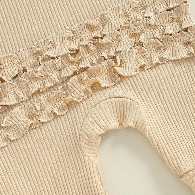 - Features: Newborn baby girl fall winter clothes,newborn coming home outfits, long ruffle crewneck jumpsuit, matches headband, the snap closures at the bottom make diaper changes a breeze, making it a convenient choice for busy parents