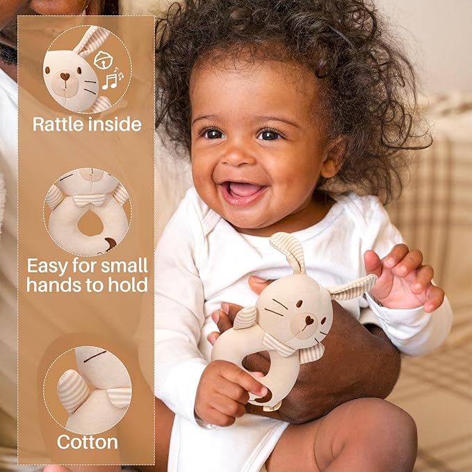 - Sensory Play – Growing from Monochrome to Color - This newborn gift set grows with your baby. In the early stage, the black & white toys encourage focus and vision recognition, while the colorful crinkle cloth book introduces bright colors and farm animals as eyesight develops. With crinkle sounds, rattles, and built-in bells, these sensory toys support motor skills, hand-eye coordination, and parent-child bonding. A wonderful addition to everyday baby essentials and playtime routines.