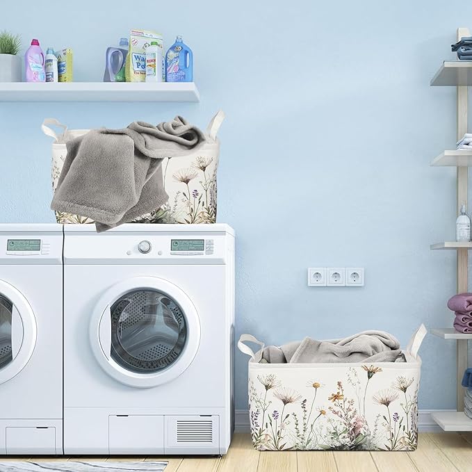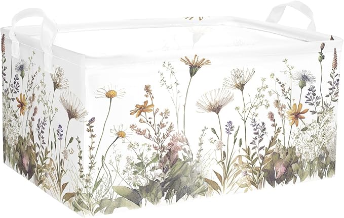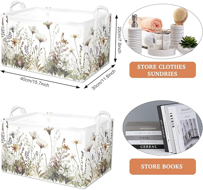 - 【VERSATILE 3-PACK SET】 Each medium-sized floral basket measures 13.7×9.8×6.6 inches (40×30×20cm), offering ample storage for baby items, clothes, toys, linens, and more. Sold as a 3-piece set, these wild flowers printed bins effortlessly organize multiple rooms while showcasing unique Western-themed prints on each floral basket.