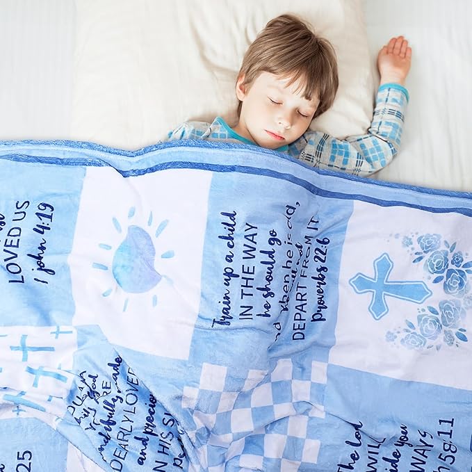 - Cozy & Sacred Baptism Trow Blanket: Wrap him in love and blessings with a soft, baptism-themed blanket. Ideal for post-ceremony cuddles, as a stroller cover, or a nursery accent, this blanket serves as a constant, comforting reminder of his faith and family on his dedication day.