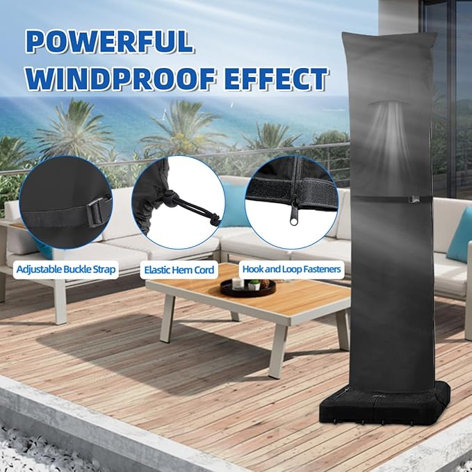 - 【WINDPROOF DESIGN】Cantilever umbrella covers are designed with an adjustable drawstring and webbing, and an elastic hem cord which can be adjusted to provide a tight fit for better windproofing. Tightening the bottom drawstring and adjustable webbing will also prevent small animals from entering and nesting, and damaging the umbrella cover