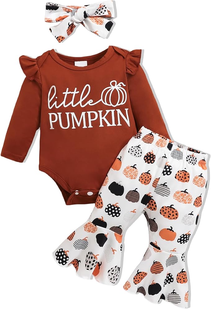 - Fashionable Classic Design:Adorable flower ruffle romper top/pant + solid pant/shirt matching cute bow knot headband express great love from family.Convenient Snap closure for easy diaper changes.