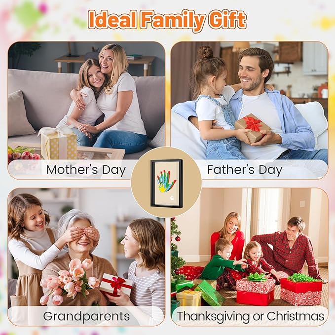 - 【DIY Family Keepsake Frame】: Create unique keepsake for your home with our lovely family handprint paint and frame set. Use the paints to print your hands on the insert, then display in the frame included. You can even capture your pet's paw prints alongside your handprints.