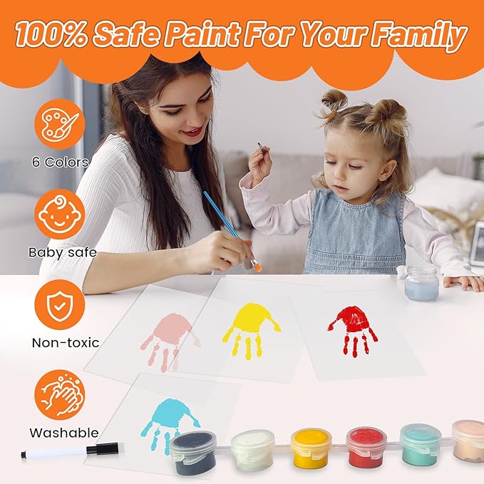 - 【DIY Family Keepsake Frame】: Create unique keepsake for your home with our lovely family handprint paint and frame set. Use the paints to print your hands on the insert, then display in the frame included. You can even capture your pet's paw prints alongside your handprints.