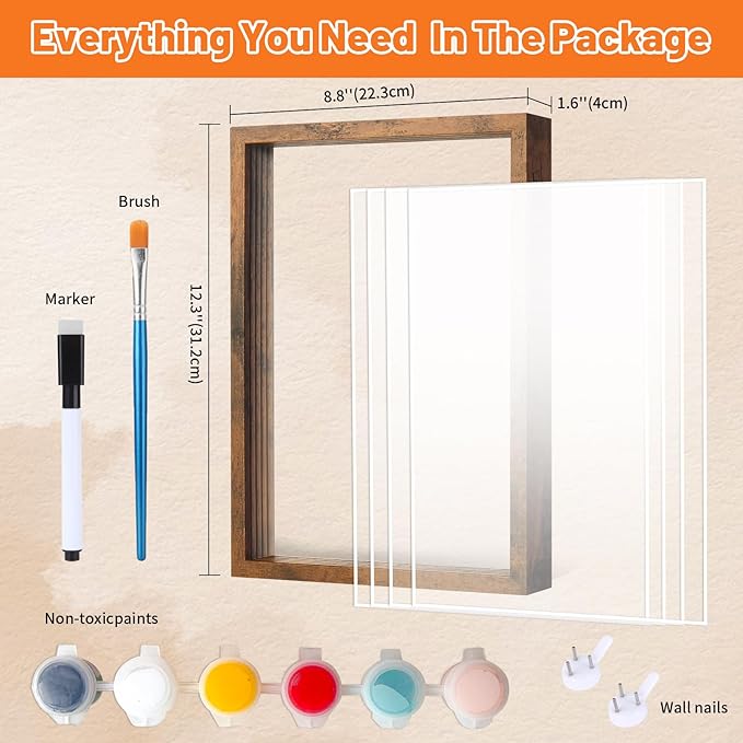 - 【Quality Family Handprint Kit】: This hand casting kit includes all the accessories you need:1 frame with 4 thickened acrylic glass sheets; 1 brush ; 1marker pen; 2 wall nails and 6 color paints which can be easily wiped and washed off.It has a extra transparent dust sticker to prevent dust from falling into the top grooves.