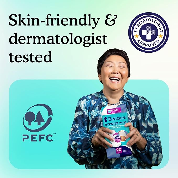- Change Less with Boosters: Like an incontinence pad, but without a waterproof backing, booster pads have a flow-through design that allows liquid to flow through into incontinence underwear to add extra absorbency