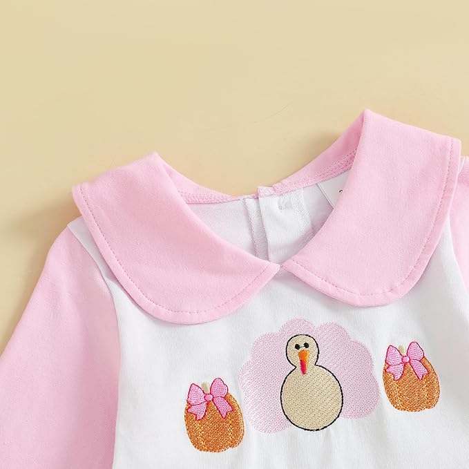 - Feature: Our baby fall footie romper is adorable, long sleeve with mitten cuffs, doll collar footies, pumpkins, turkeys,mallard duck embroidery match with white and pink or white and blue checkered or solid color background, one-piece cotton footie, an old-fashion and cute fall clothes for baby boys and baby girls