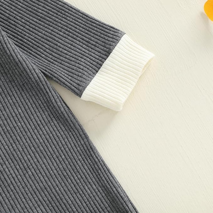 fhutpw Newborn Baby Boy Clothes Ribbed Knit Bodysuit 3 6 Months Infant Fall Long Sleeve Splicing Color Romper Jumpsuit & Hat