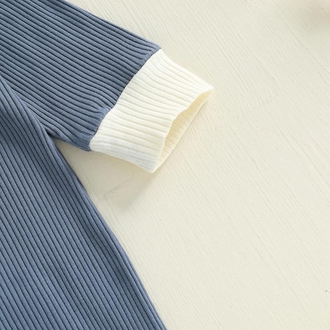 fhutpw Newborn Baby Boy Clothes Ribbed Knit Bodysuit 3 6 Months Infant Fall Long Sleeve Splicing Color Romper Jumpsuit & Hat